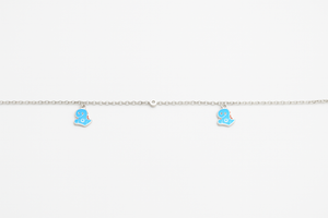 Bring a playful sparkle to your steps with Miora’s charming Dino Anklet — a delightful blend of fun and elegance. Crafted in fine sterling silver, this anklet features tiny enamel dinosaur charms in cheerful blue with red accents, hanging gracefully from a delicate silver chain. Lightweight and comfortable, it’s perfect for adding a hint of whimsy to your everyday look or gifting to someone who loves unique, youthful accessories.