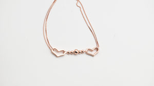 Celebrate love and elegance with Miora’s 925 Sterling Silver Rose Gold Double Heart Anklet — a timeless symbol of affection and grace. Crafted in pure sterling silver with a radiant rose gold polish, it features two beautifully intertwined hearts connected by delicate silver beads. This anklet adds a romantic yet classy touch to your everyday and festive looks.