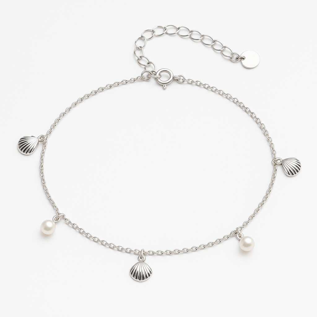 Inspired by the serene beauty of the ocean, this Miora anklet combines the charm of the sea with timeless sophistication. Designed with dainty seashell charms and luminous pearls, it evokes a breezy coastal vibe — elegant yet effortlessly casual. Whether you’re walking barefoot on the beach or dressing up for brunch, this anklet adds a graceful sparkle to every step.