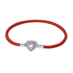 Design: Braided red cord with a double-layered zircon heart charm
