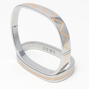 A fusion of strength and elegance, this Dual Tone Stylish Kada Bracelet redefines contemporary style. Expertly crafted from premium silver with 92.5 hallmark purity, it features sleek rose gold zigzag and line engravings that lend a touch of bold sophistication. Its unique square silhouette stands out with architectural precision — a statement piece for the modern man who values craftsmanship and individuality.