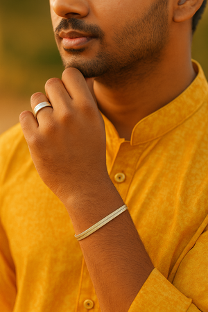 Elegant and bold, the Men Glossy Kada Bracelet captures the essence of refined masculinity. Crafted with precision, its matte silver body is accentuated by three sleek engraved lines that add a touch of modern sophistication. Designed for men who value timeless style, this bracelet is perfect for both casual and formal looks — a subtle statement of confidence and class.