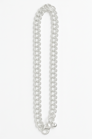 Crafted with a bold and elegant design, this Sterling Silver Double-Link Chain is made for those who appreciate refined luxury. Each interlocking link is polished to perfection, creating a beautiful shine that catches the light with every movement. Strong, stylish, and timeless—this chain adds an effortless statement to your everyday look and elevates any outfit with its modern charm. Wear it solo for a sleek appearance or pair it with a pendant for a personalized touch.