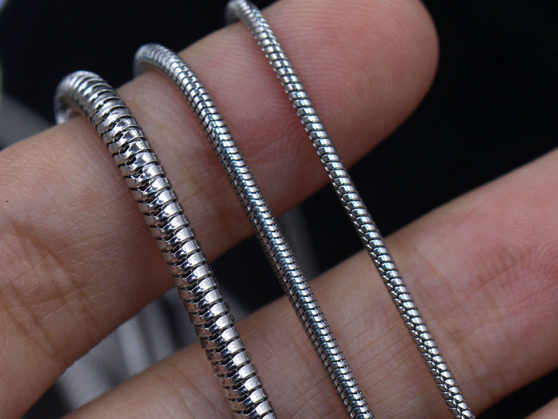 Pair the thin chain with a delicate pendant for a minimalist look, or wear the thicker version solo for a powerfully bold statement — the Snake Chain complements every mood and outfit.
