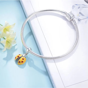 This cheerful ladybug charm is crafted in sterling silver and finished with vibrant yellow enamel and sparkling red stone accents. Symbolising good luck, happiness, and positivity, its playful design adds a joyful pop of colour to your charm collection—perfect for everyday wear or meaningful gifting.