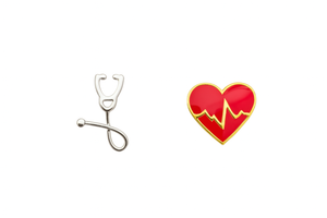 - Design: Red enamel heart with ECG line & metallic stethoscope