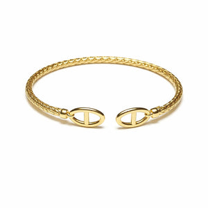 Gracefully crafted with a refined braided design, this Miora open cuff bracelet is a timeless expression of elegance. Made in sterling silver and finished with a radiant gold plating, the intricate weave adds texture while maintaining a clean, sophisticated look.