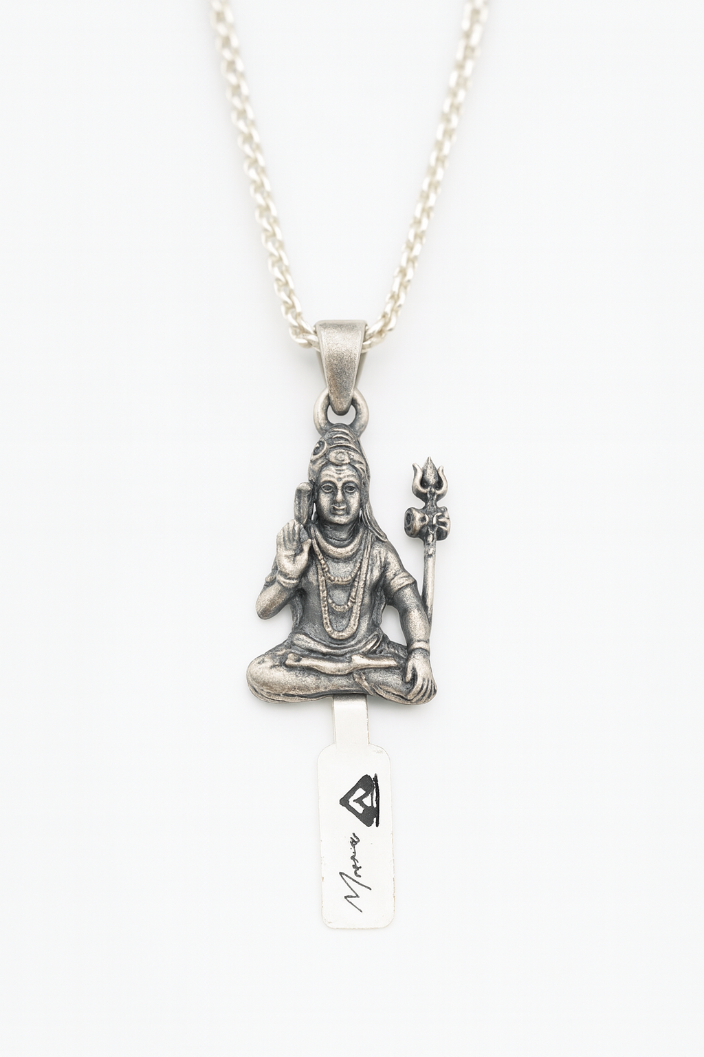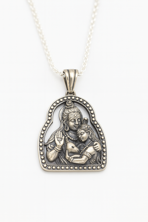 Embrace divine strength and tranquility with the Lord Shiva Pendant Necklace, meticulously handcrafted in sterling silver. This pendant captures the serene yet powerful essence of Lord Shiva — the destroyer of evil and the embodiment of cosmic balance. Every intricate detail, from the flowing hair to the symbolic accessories, reflects fine artistry and devotion. Perfect for spiritual seekers and admirers of Indian heritage, this piece connects faith with timeless design.