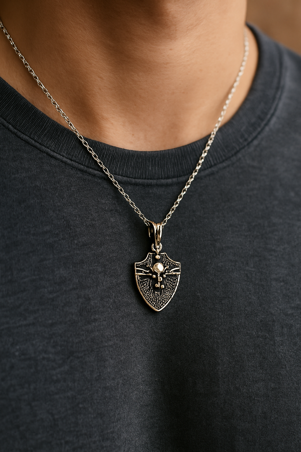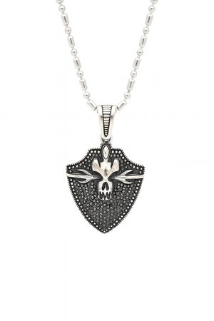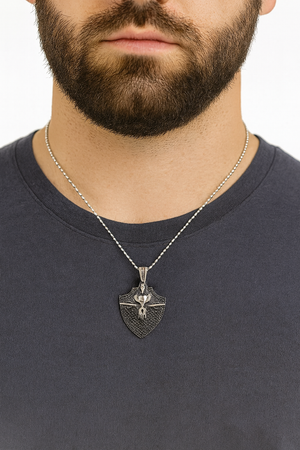 Embody strength and protection with this Shield & Swords Pendant Necklace, crafted for those who carry courage close to their heart. The intricate detailing of the shield, accented by twin swords, symbolizes honor, bravery, and resilience. Its oxidized silver finish adds a timeless, vintage appeal, while the fine craftsmanship makes it a standout accessory for men who appreciate meaning in their style.