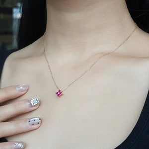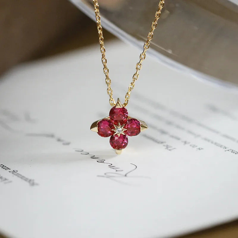 A symbol of charm, fortune, and effortless grace — this stunning red clover pendant adds a touch of magic to your everyday style. Crafted with four vibrant red stones arranged like a blooming flower, the piece radiates warmth and positivity with every movement. At the center rests a delicate star-shaped sparkle, bringing a subtle glow that beautifully lights up your neckline.