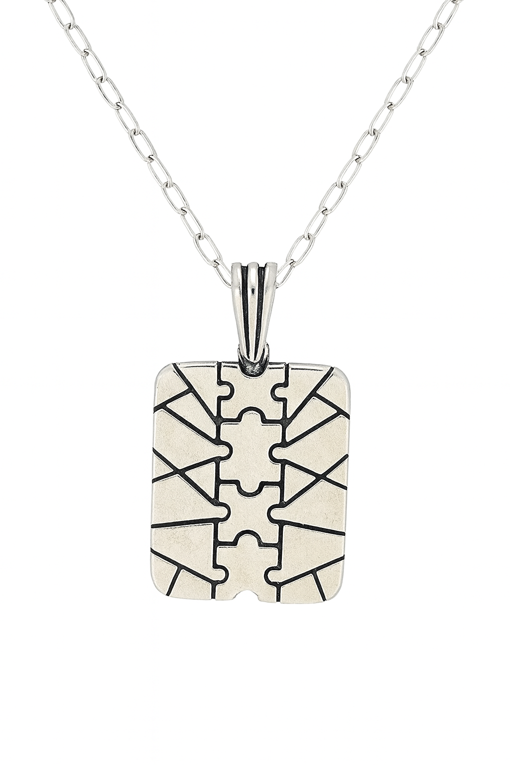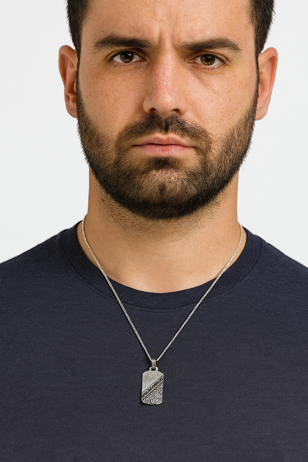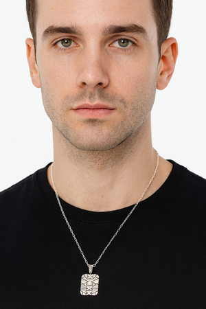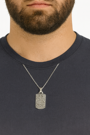 Make a powerful statement with the Geometric Industrial Tag Pendant Necklace, designed for the modern minimalist who values both strength and style. Crafted in sterling silver, this pendant features intricate geometric patterns and bold oxidized detailing — symbolizing individuality, power, and movement.
