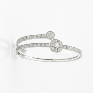 The Éclat Duo Bangle by Miora radiates modern luxury through its balanced design and intricate craftsmanship. With twin zircon-studded bands meeting at a captivating floral centerpiece, this bracelet embodies both grace and brilliance. Each detail reflects timeless artistry — perfect for those who appreciate subtle sparkle and elevated refinement in every gesture.