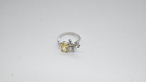 Stone: Yellow cushion-cut crystal with cubic zirconia