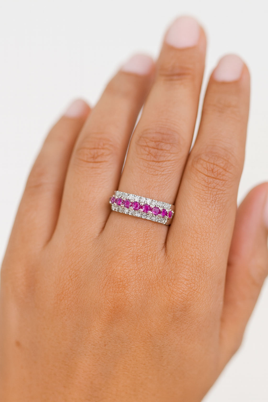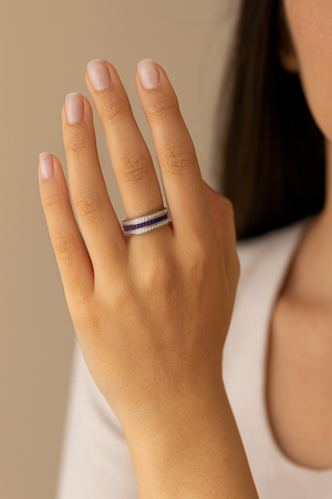 Womens Baguette & White Zircon Triple Row Band Ring Statement Cocktail Ring