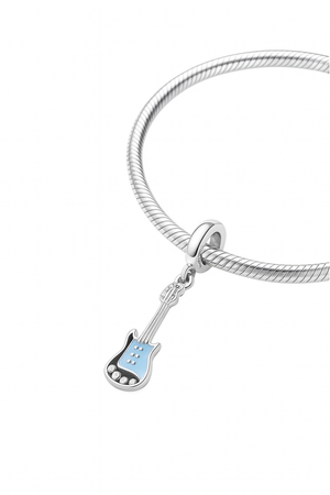 Turn up the volume on your style with this Guitar Charm from Mioras Tiny Treasures Collection. Designed for music lovers and free spirits, it features a stunning mix of blue and black enamel, accented with sparkling details that mimic the strings and knobs of a real guitar. This charm perfectly blends rhythm, creativity, and personality Ñ a stylish reminder to always play your own tune.