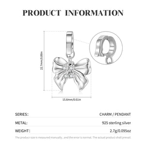 The Bow charm brings soft elegance and feminine grace to your bracelet. Sculpted in smooth silver with gentle folds that mimic real satin ribbon, it sparkles subtly with tiny stones at the center. This bow feels timeless—perfect for adding a touch of charm, sweetness, and sophistication to your everyday look.
