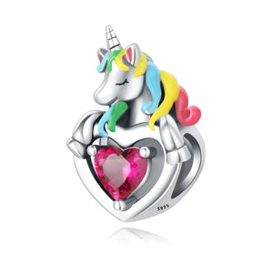 Add a splash of magic to your bracelet with this Unicorn Heart Charm. Featuring a rainbow-colored mane and a sparkling pink heart, this charm embodies purity, dreams, and endless joy.