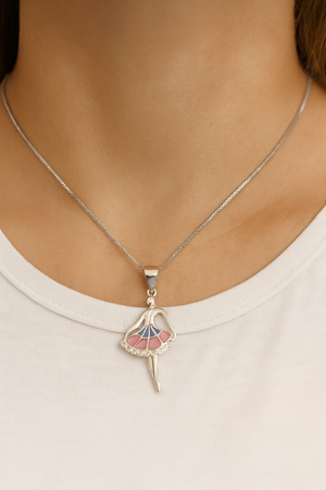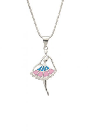 This beautifully crafted pendant showcases a ballerina figure adorned with pink and blue enamel detailing, symbolizing balance, poise, and artistic expression. The flowing form and delicate design make it a statement of effortless charm Ñ perfect for dreamers, performers, and lovers of all things graceful.