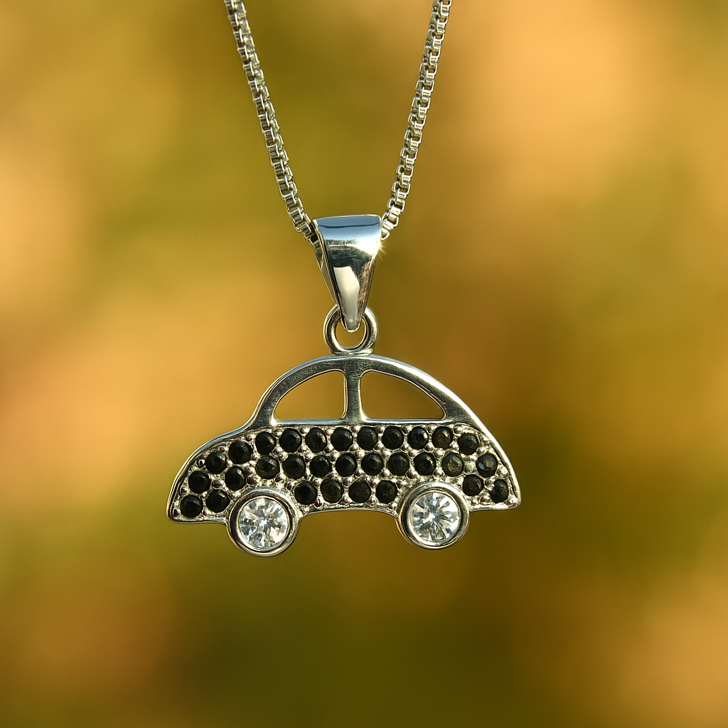 💎 Car Pendant: A chic, fun design with contrasting black and white stones — perfect for dreamers, travelers, and adventure lovers.