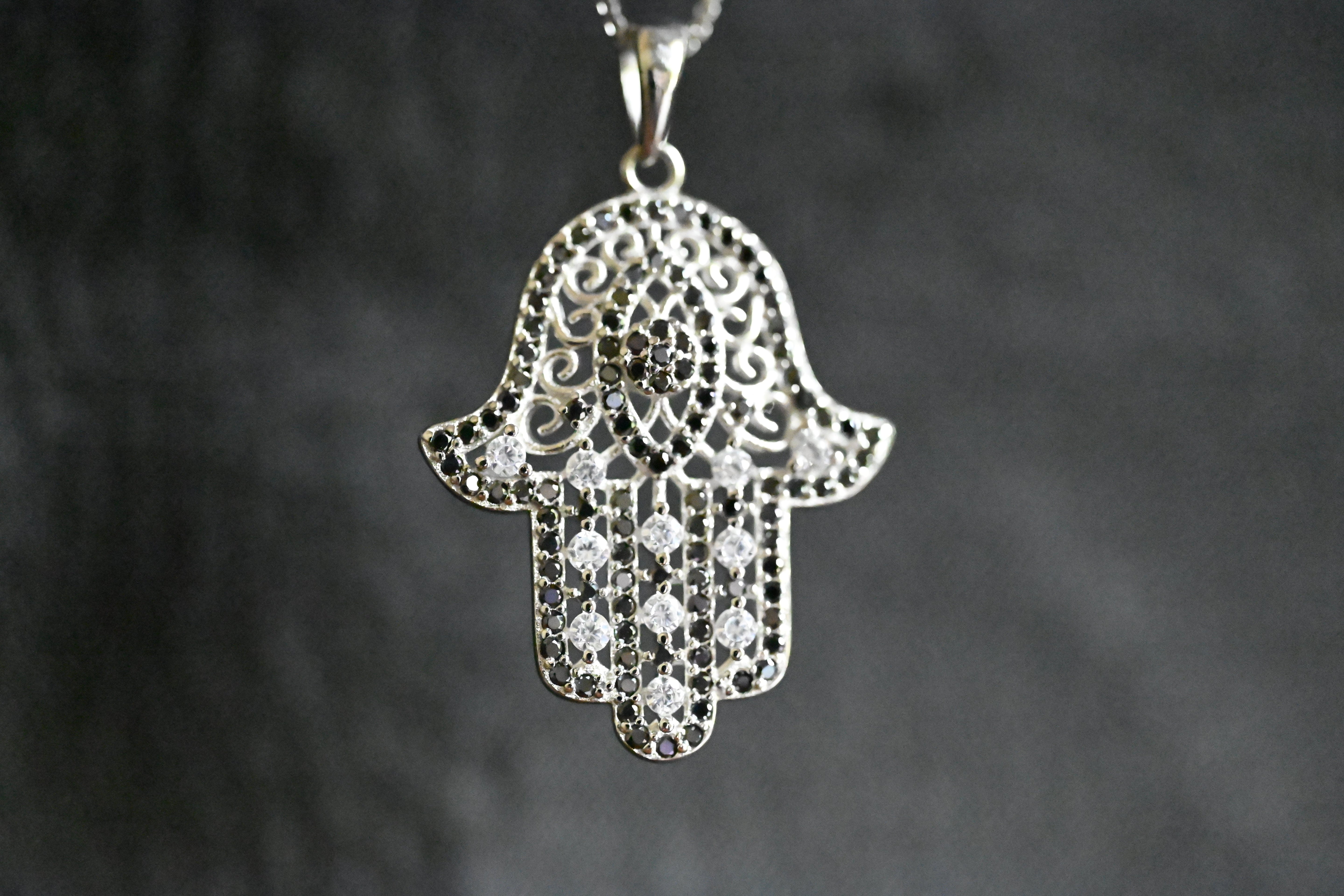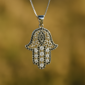 🪬 Hamsa Hand Pendant: A classic symbol of protection, peace, and positivity, detailed with intricate craftsmanship and shimmering stones.