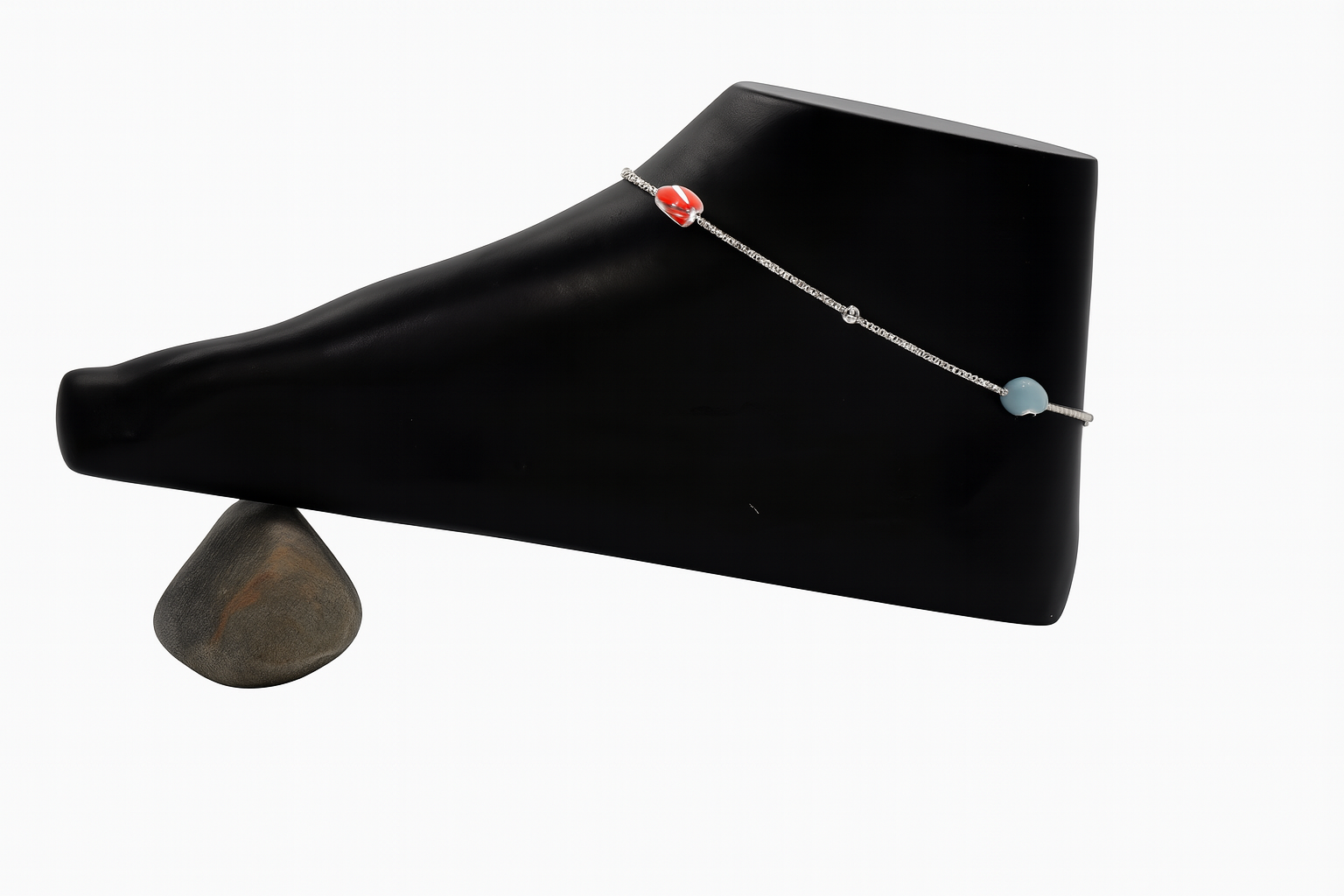Add a touch of charm and protection to your steps with Miora’s handcrafted Evil Eye Charm Anklet. Beautifully designed in fine silver, this anklet features alternating turquoise evil-eye beads and vibrant orange glass accents that symbolize positivity and energy. Its minimalist design blends perfectly with both ethnic and modern looks, making it a must-have for your jewellery collection.