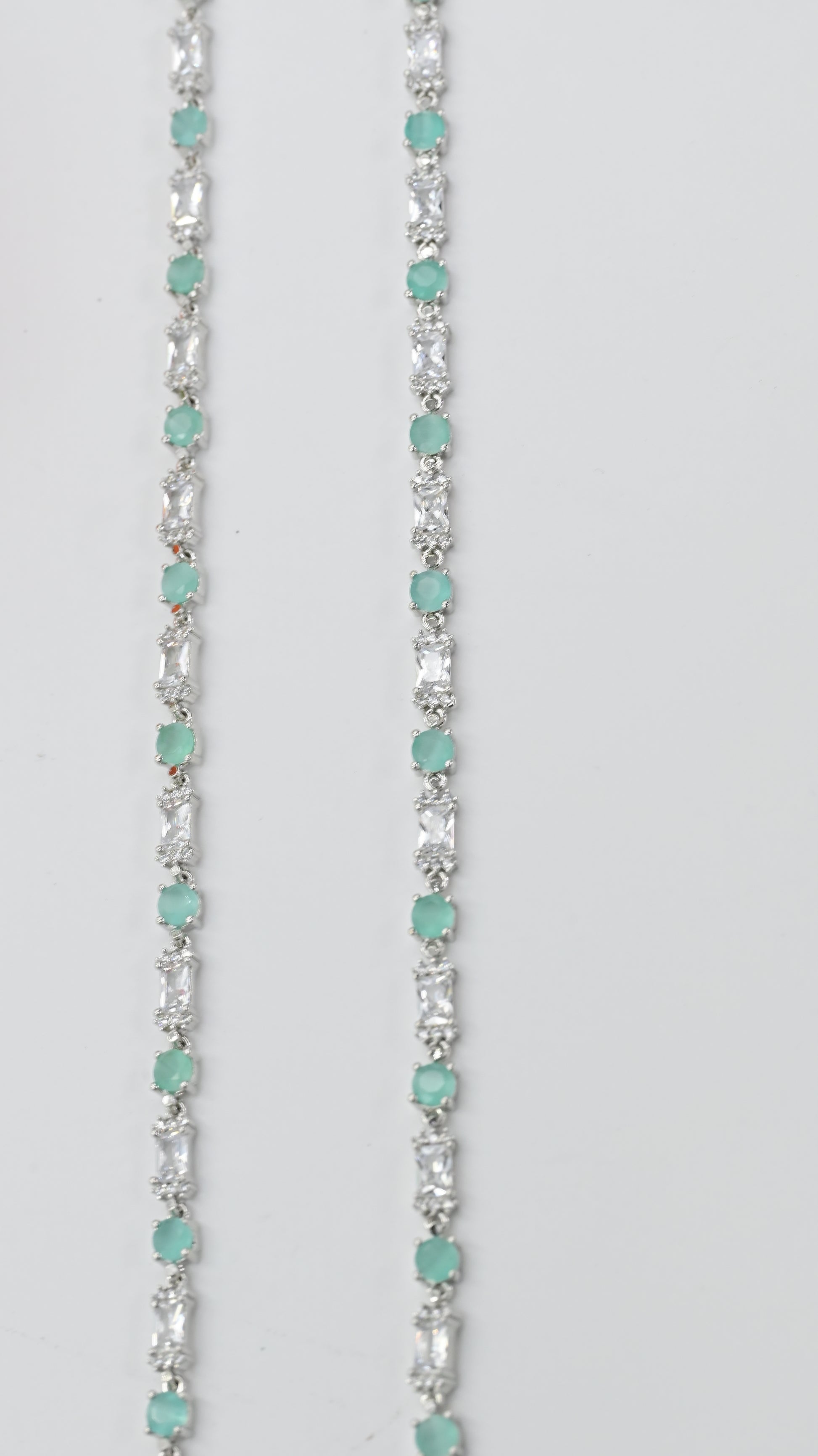 Grace your ankles with Miora’s Mint Green & White Zircon Anklet — a perfect harmony of freshness and sparkle. Crafted in fine silver, this anklet features alternating mint-green gemstones and radiant white zircon stones that shimmer beautifully with every step. The soothing pastel tone brings a refreshing touch, while the sleek silver finish adds timeless elegance.