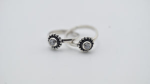 Delicate yet striking, these beaded edge toe rings from Miora are a timeless expression of understated beauty. The design features a sparkling stone encased in a circular beaded frame, finished in oxidized silver for a subtle vintage charm. Lightweight and adjustable, they’re perfect for daily wear or to add a graceful accent to festive attire. A simple piece that pairs beautifully with both traditional and contemporary looks.